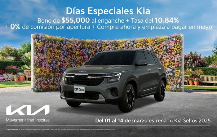 Promoción válida del 1 al 14 de marzo. Consulta términos y condiciones con tu asesor Kia.