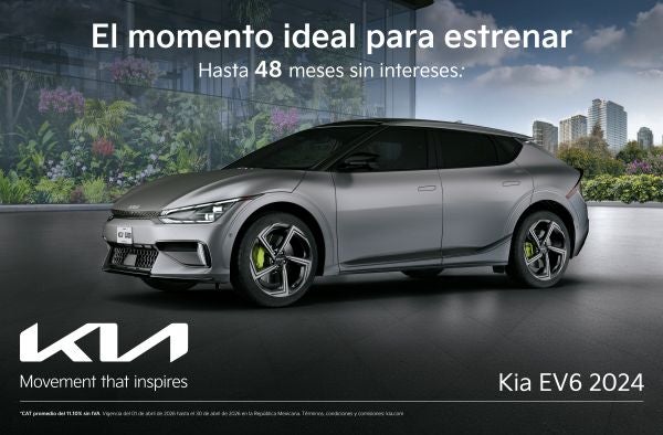 Aprovecha el momento ideal para estrenar el Kia EV6 2024, el SUV eléctrico que combina diseño visionario, aceleración instantánea y tecnología de carga ultrarrápida. Disfruta de un financiamiento exclusivo con hasta 48 meses sin intereses. Conectividad avanzada, autonomía excepcional y el respaldo que inspira movimiento.