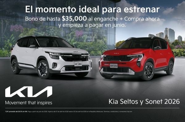 Aprovecha el momento ideal para estrenar los SUV más versátiles de Kia. Adquiere tu Kia Seltos o Sonet 2026 con un bono de hasta $35,000 aplicado directamente a tu enganche, y compra ahora con la facilidad de empezar a pagar hasta junio. Diseño audaz, tecnología avanzada y el respaldo que inspira movimiento. ¡Hazlo tuyo!